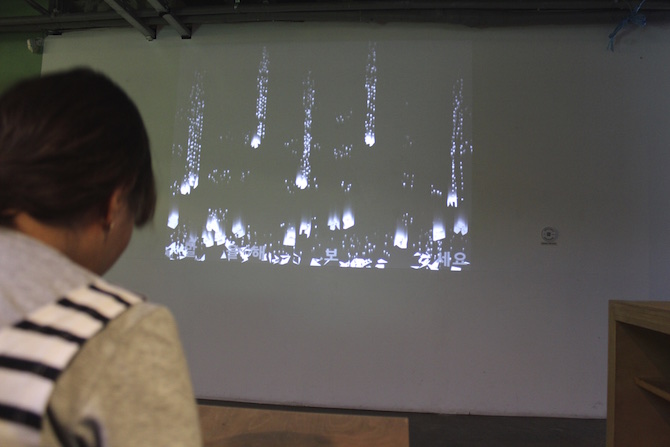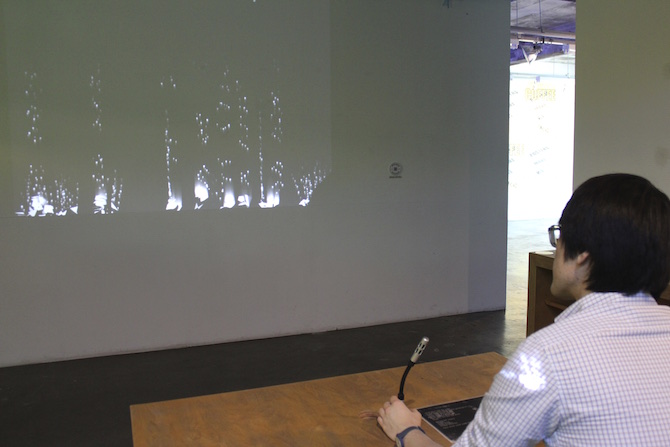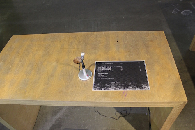 그가 시를 읽으면 글자들이 음악이 되고 그 음악 소리와 발화된 말소리가 섞여서 다시 글자가 되어 시가 된다면 그것이 이 공간을 있는 그대로 들려줄 수 있는 방법이 될 것이라 보고 작업 방향을 정하였다.